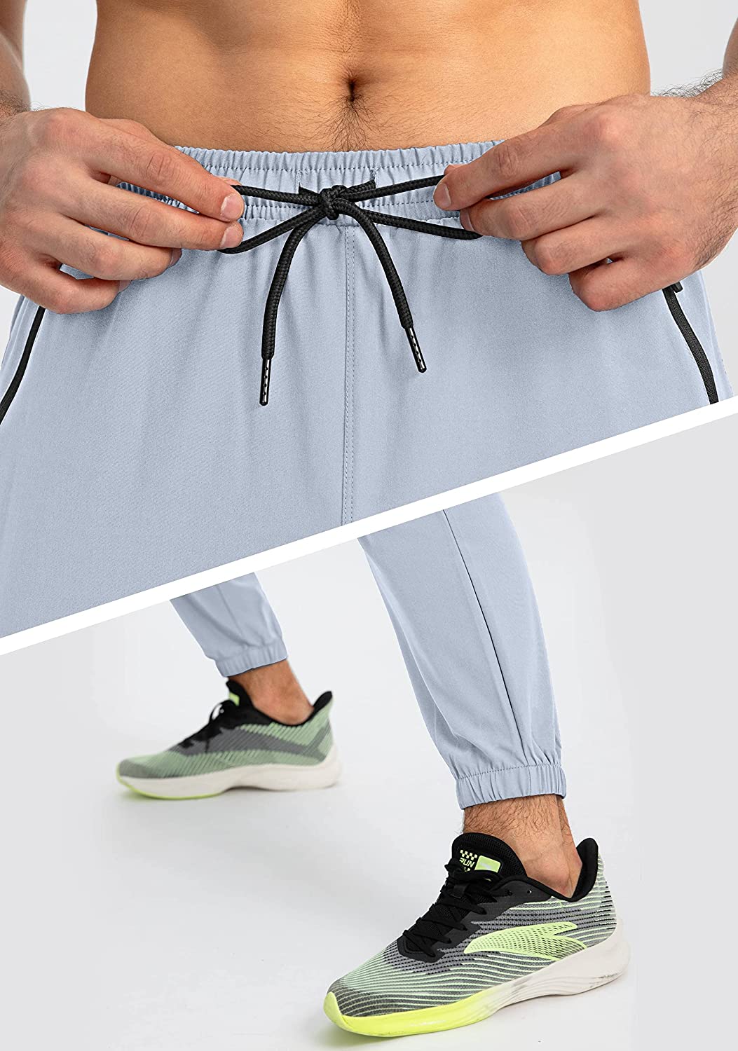 • Tapered Cuffs: The men’s athletic joggers with elastic tapered cuffs provide great mobility and keep the lengths which are suitable for running and doing exercise.