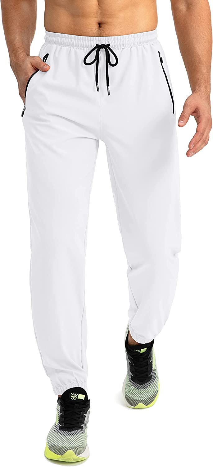 ZEEGLOW Men’s Lightweight Jogger Pants Athletic Workout Running Pants White