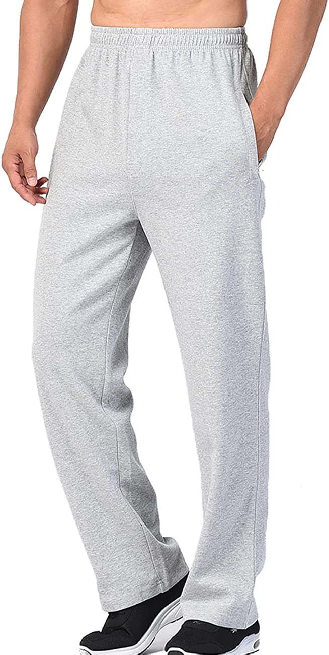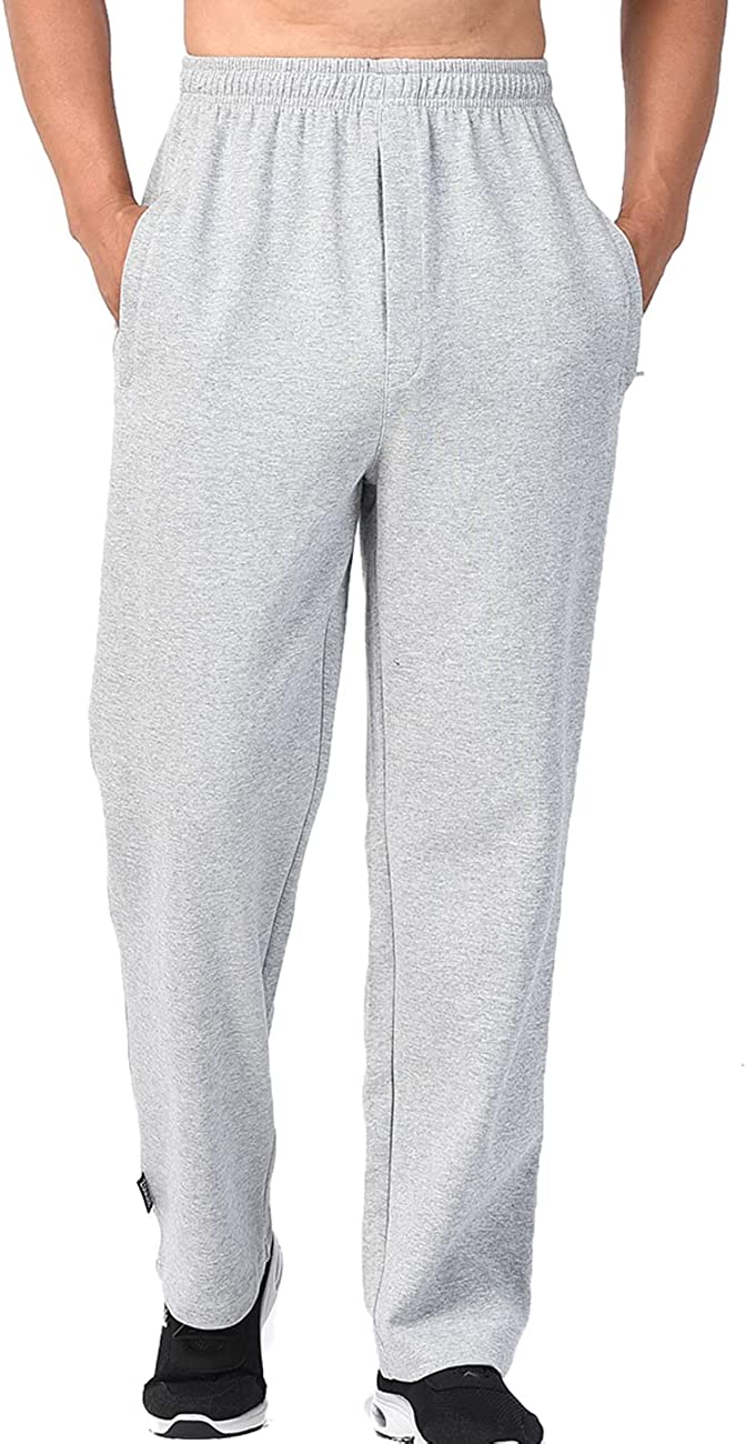 Zeeglow Men’s Open-Bottom Sports Pants Sweatpants Trousers Front Zip Fly Closure Light Grey