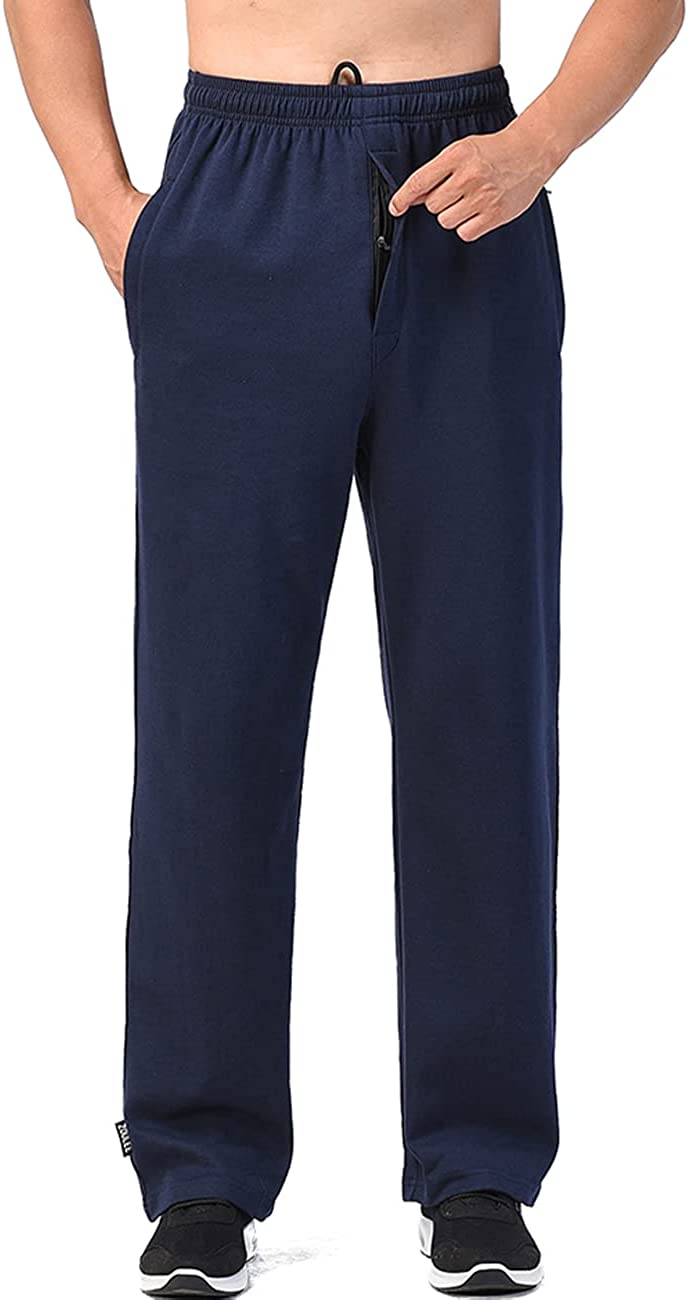 Zeeglow Men’s Open-Bottom Sports Pants Sweatpants Trousers Front Zip Fly Closure Navy Blue