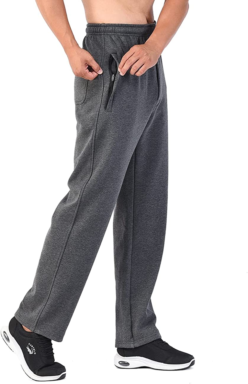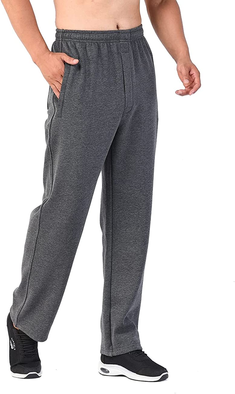 Men’s Open-Bottom Sports Pants Sweatpants Trousers Front Zip Fly Closure
