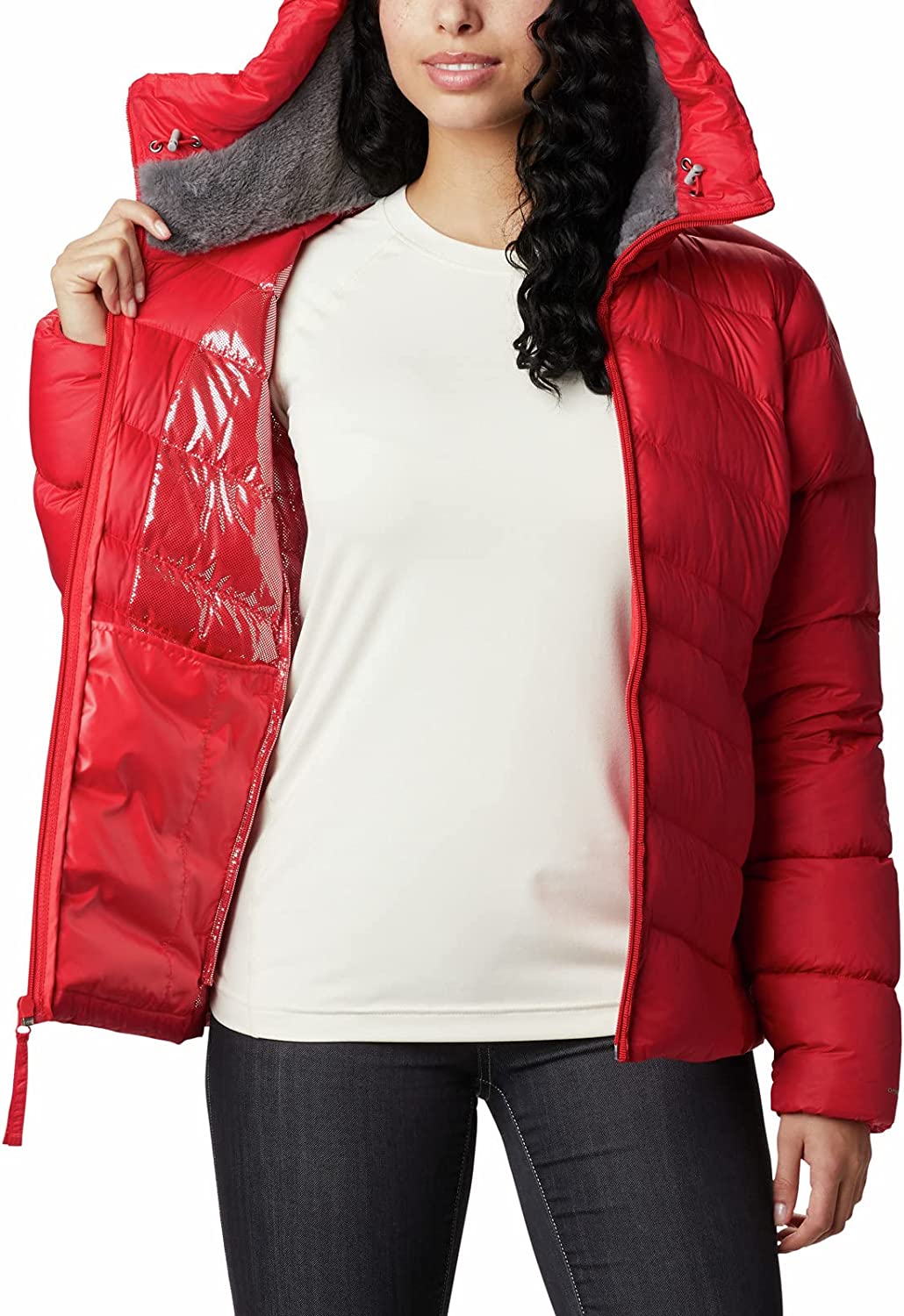 HomeWomensJacketsZEEGLOW Women’s Autumn Park down Hooded Jacket Metallic Red Lily