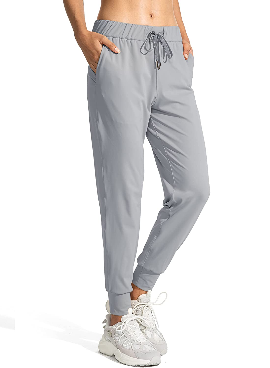 ZEEGLOW Women’s Joggers Pants Pockets Drawstring Running Sweatpants Bright Grey