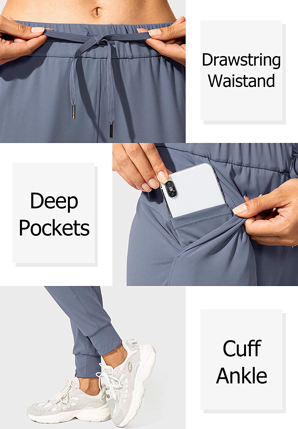 • Fabric: 75% Nylon / 25% spandex. Zeeglow women’s joggers pants made of Soft, comfortable and four-way stretch fabric provide you with maximum comfort, support and coverage in your workout.