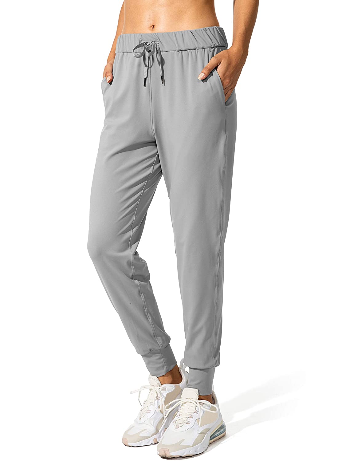 ZEEGLOW Women’s Joggers Pants Pockets Drawstring Running Sweatpants Light Grey